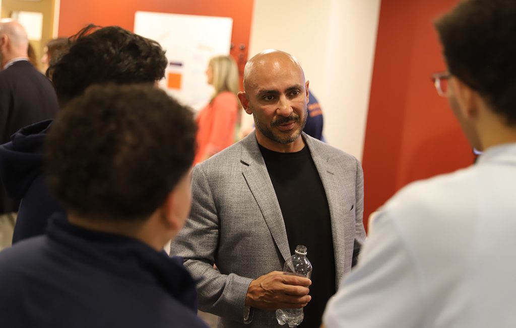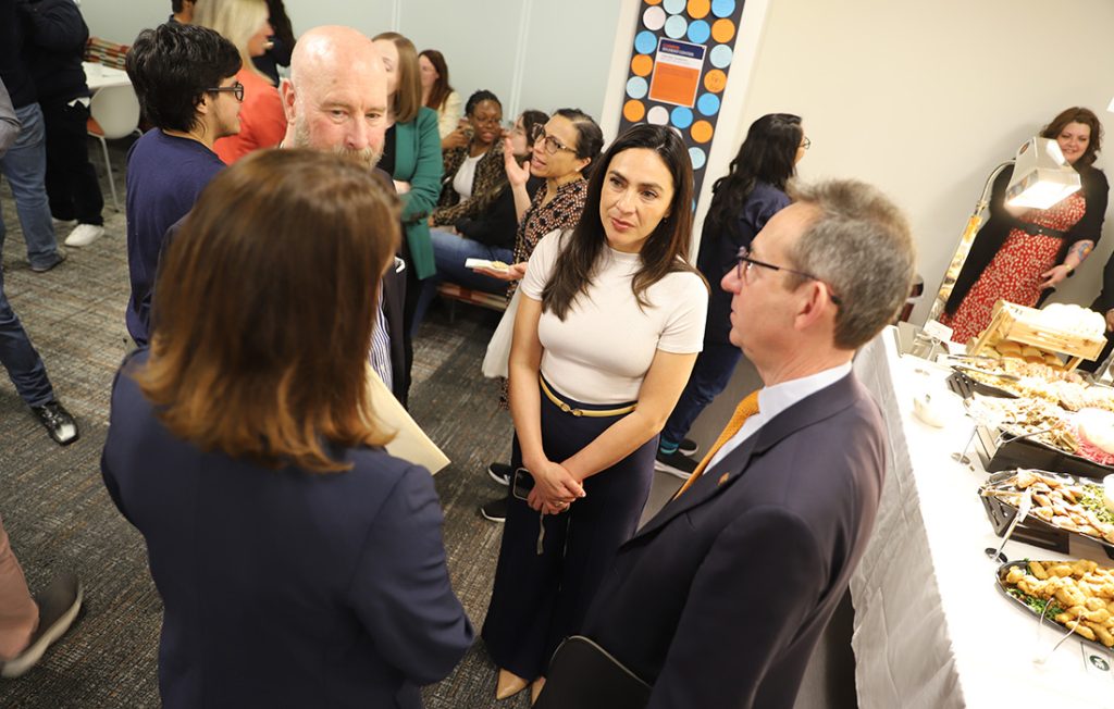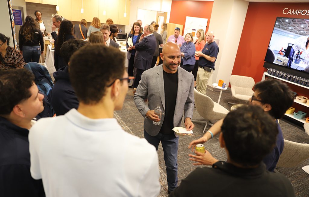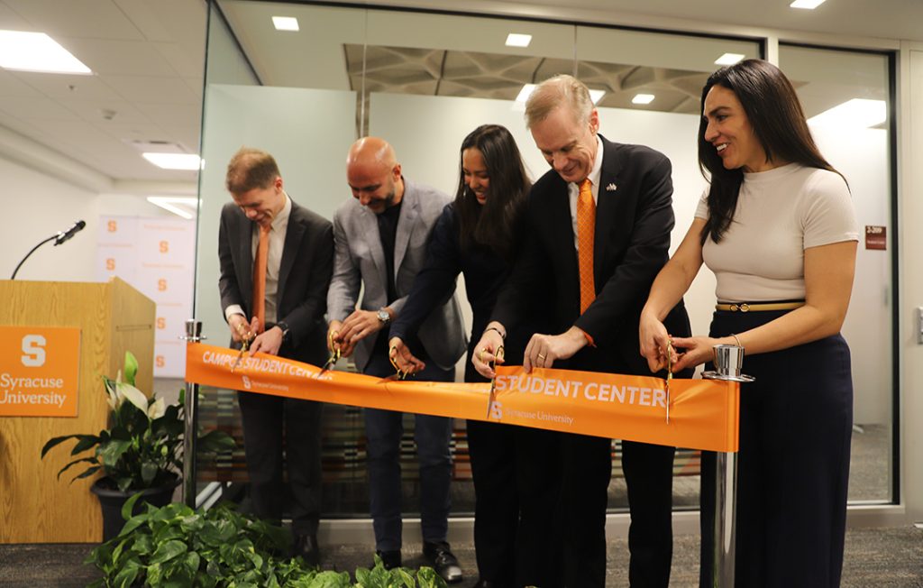 Marco Campos, Deanna Campos-Miller and Engineering and Computer Science Dean J. Cole Smith joined Syracuse University Chancellor Kent Syverud for the ribbon cutting and a reception with students.